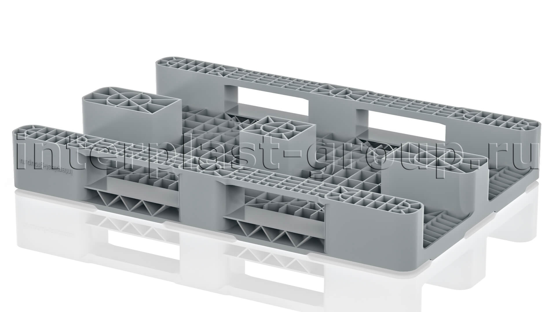 Поддон пластиковый сплошной на двух полозьях, 1200x800x150 мм (серый)